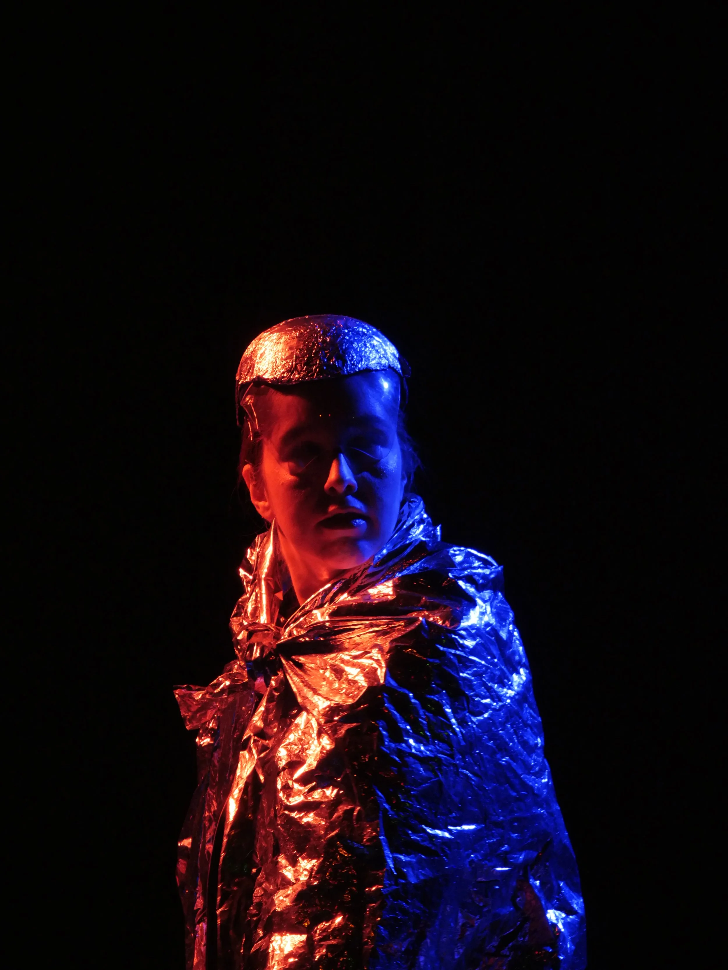 1h pour sauver le théâtre est un projet scénique s'intéressant au statu quo, aux systèmes de privilège, aux dynamiques de pouvoir ainsi qu'à cette zone poreuse qui permet à la fiction de cohabiter avec la réalité. La déconstruction des privilèges et la prise de conscience de notre impact sur les êtres vivants avec lesquels nous coexistons constituent les racines de la solution à l'ensemble des grands problèmes sociaux et environnementaux de notre époque. 1h pour sauver le théâtre constitue à la fois une métaphore du statu quo écologique de notre société, qui, devant l'imminence de la fin, demeure figée dans des pratiques écocidaires sous prétexte de la protection de l'économie, et une réflexion plus large sur le vivre-ensemble. Par un travail d'états de corps, ce spectacle explore la zone floue qui nous fait passer d’un répertoire quotidien à quelque chose de grandiose. Quels sont les interrupteurs qui nous font osciller entre réalité et fiction ? Ce spectacle propose des images polysémiques qui évoluent lors de la représentation et nous fait traverser les binarités micro/macro, banal/fantastique et inaction/surproduction. Cette lente transformation permet de passer d'une réflexion (et d'un mouvement) à l'autre sans distinctions, comme lorsqu'on observe les nuages dans le ciel changer de formes à notre insu.