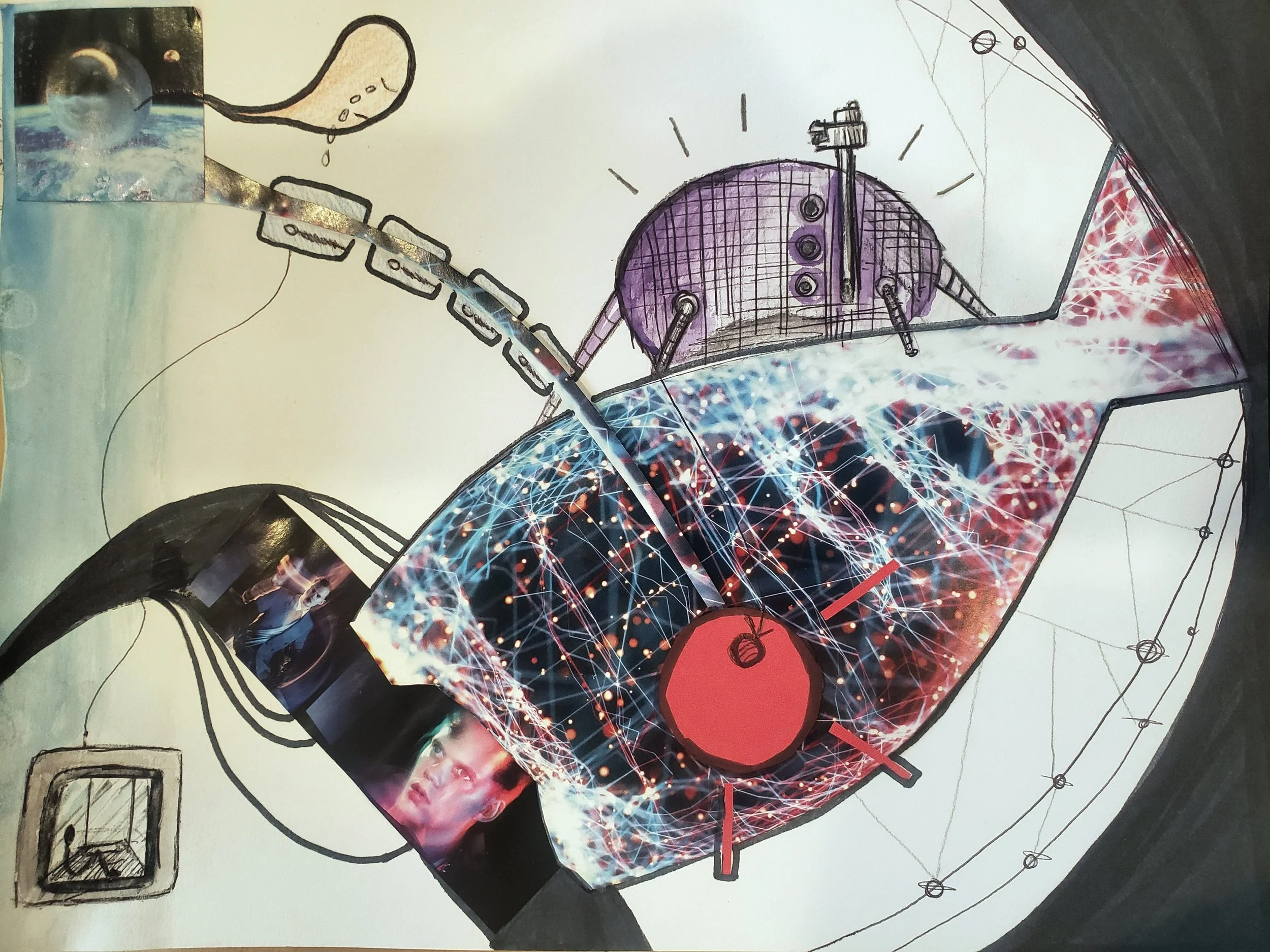 Because of the current COVID-19 situation, we had to adapt the play to an online setting. It was an incredible opportunity to rethink stage design for a virtual Zoom platform. For me, design is even more fascinating when it comes to challenges and constraints. In a contradictory way, I find it opens new horizons and opportunities for creation. For the set design of The Red Line, I experimented with and used virtual sets, green screens, and optical illusions. Through this project, I also learned to transform/reinvent things and objects actors had at home into something else. For example, a table was used in many different ways: as an outdoor bench, like a suitcase cargo to hide under, as a stand for vegetables in the market, etc. Finally, the set design of the second act (happening on Mars) was made using recycled materials such as plastic bags, cardboard boxes, and bubble wrap because I envisioned life on Mars as a “second chance for humanity” (garbage from earth was reused/recycled on Mars to build the new city).
